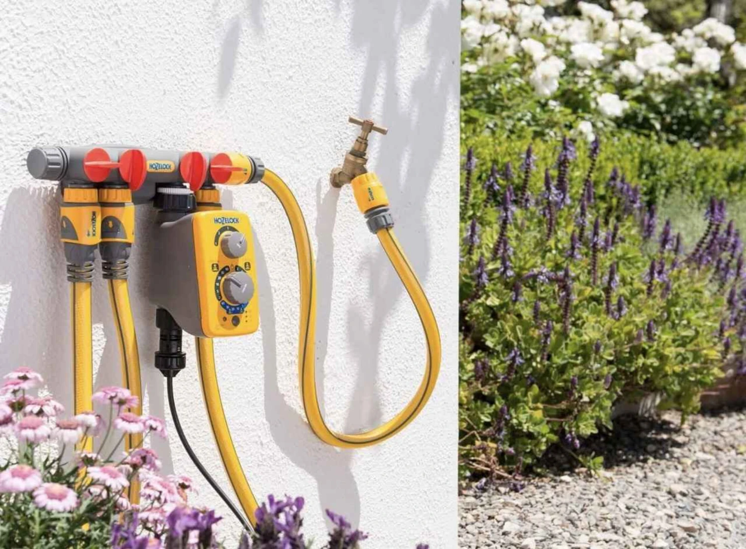The Hozelock 4 way tap connector allows water supply to be divided in up to four outlets with individual flow valves. Unique design remote from the tap allows convenient water supply anywhere in the garden, just run a length of hose from the tap to the Hozelock 4 Way Tap Connector. Allows the use of two Electronic Water timers running separate irrigation systems (e. G. one for a greenhouse and one for a patio). Can be used with or without wall bracket supplied.(Includes 2 Hose Connectors 2166) – Ideal for installing individual watering systems