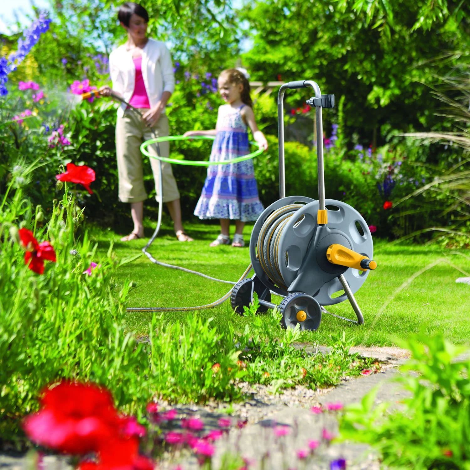 - Lightweight reel with 30m of multi purpose hose