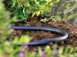 The Hozelock Flexi Hose carries water from the tap to individual drippers positioned around the garden. It is highly flexible, easy to install, and can be cut to create different setups.