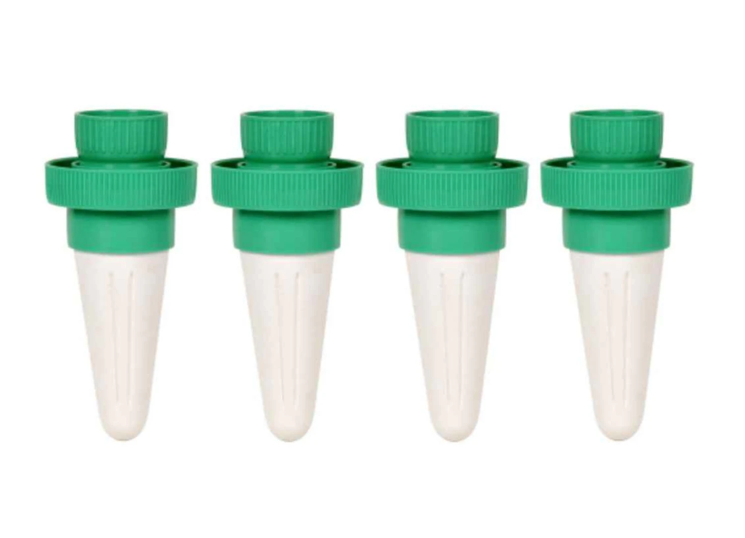 The Aquasolo watering spikes are available in 4 sizes Small, Medium, Large, Extra Large with different colors. Each color has a different water release that is precisely tailored to the pot size of your plant. This 3 + 1 Free set with Green spikes is especially suitable for plant pots with a diameter from Ø30 to 40 cm. Depending on the bottle size used, it offers sufficient water for up to 10 days.