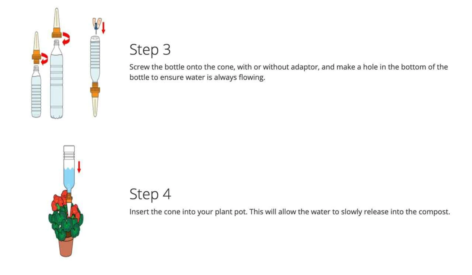 This simple automatic watering system consists of a patented ceramic cone and a plastic screw adapter that fits on almost every 0.5 to 5 liter plastic bottle and is set up in just a few minutes. Thanks to the reusable reservoir, the Aquasolo can also be used to provide liquid plant food. It is a handy system for both greenhouse plants and house plants.