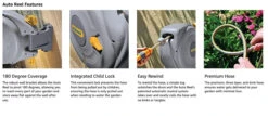 - A powerful spring automatically retracts the hose without any kinks, tangles or effort