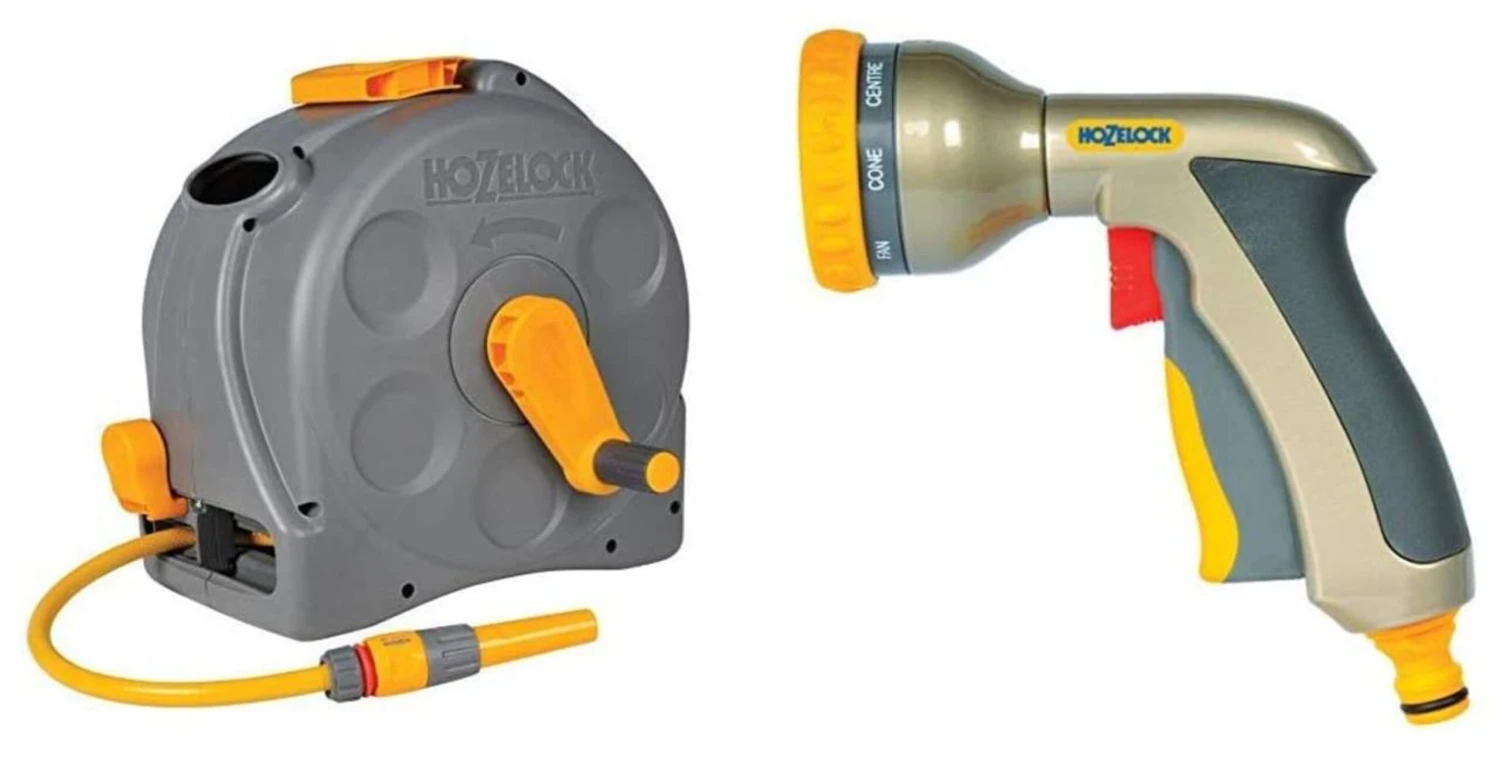 Hozelock Compact 2in1 Reel with 25m Hose The Compact 2in1 Reel with 25m Hose can be wall mounted or used as a free standing reel. It comes supplied with 25m of multi-purpose hose. Thanks to the enclosed casing, the hose is further protected during storage ensuring the life of hose. Made from the highest quality plastics, the 25m 2in1 Compact Hose Reel will stand the hard wearing challenge of gardening tasks, time after time. It comes with a 2 year warranty and like most Hozelock products, a full range of spares are available to extend the life way beyond this. This Hozelock 25m 2in1 Compact Reel has an easy rewind action and includes a viewing window that allows for full control and stress free rewinding. A folding carry handle ensures the reel is fully portable and is designed to be quickly and easily assembled. Hozelock 2352 Hose Fitting Starter Set The Hozelock Watering Starter Set comes supplied with everything you will need to get your brand new garden hose off to a flying start! It comes supplied with a 3/4″ & 1/2″ Outdoor Threaded tap connector that fits 95% of all garden outdoor taps, a hose end connector, an AquaStop hose end connector and a Hose Nozzle. The Nozzle is fully adjustable from a jet to fine mist spray