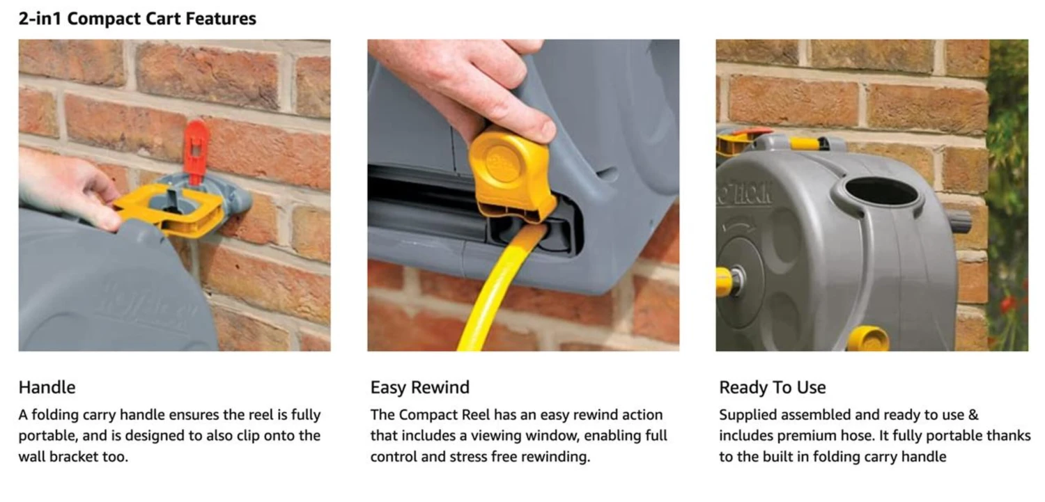 Hozelock Compact 2in1 Reel with 25m Hose & Hozelock Connection starter set