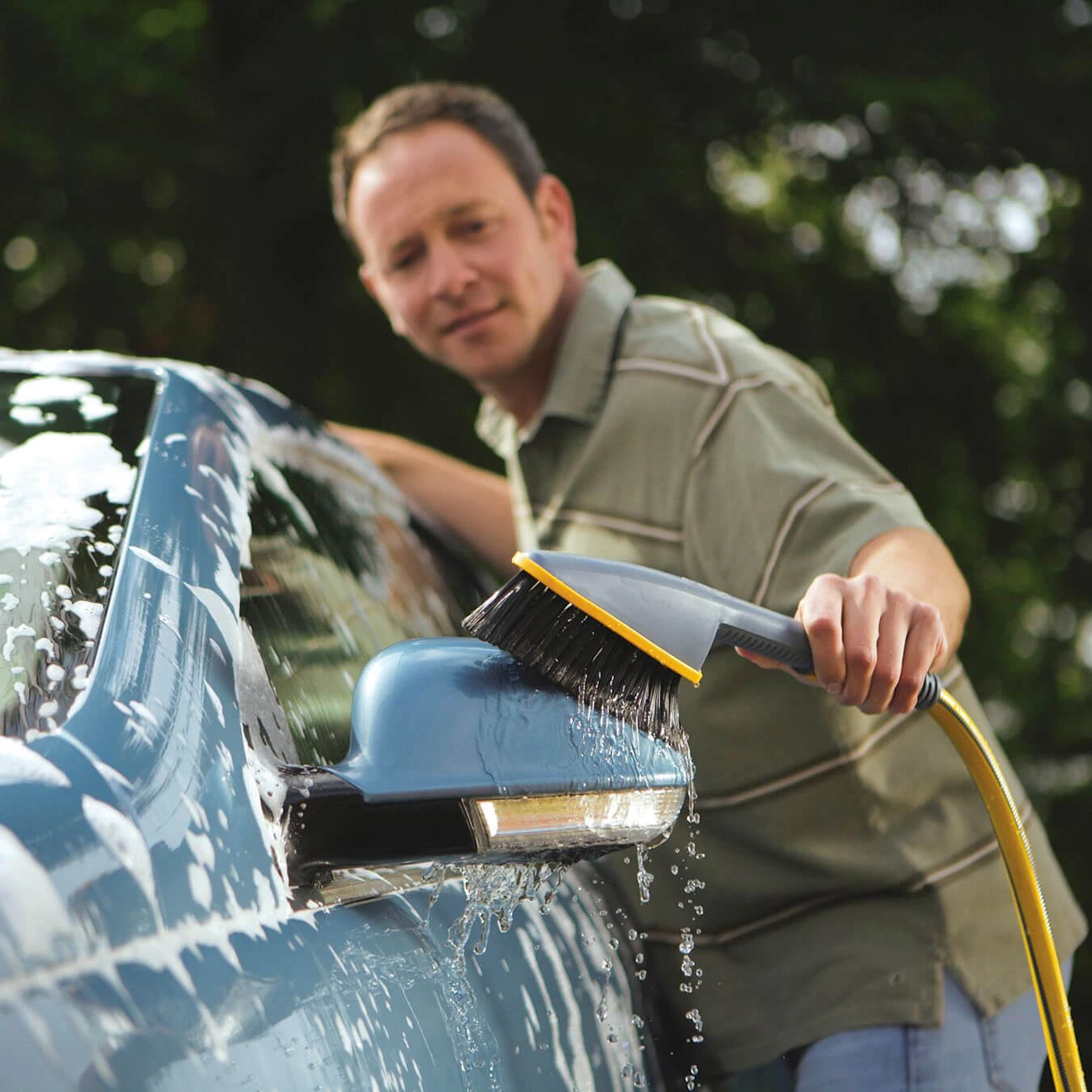 The whole new range from Hozelock makes car cleaning easier. The Short Car Brush is especially designed for cleaning family sized cars and motor bikes. It comes with flow-through and 10 soap sticks so fresh soapy water is running through all the time.